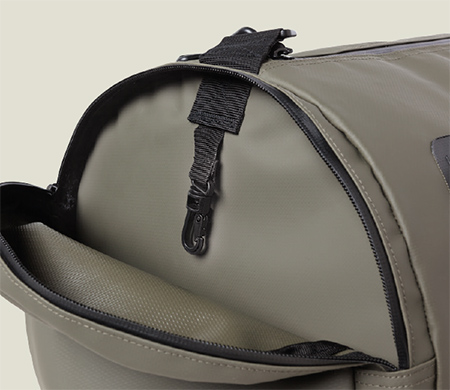 The key clip is conveniently located on the exterior side pocket in a color contrast nylon making it easy to find after your journey home.